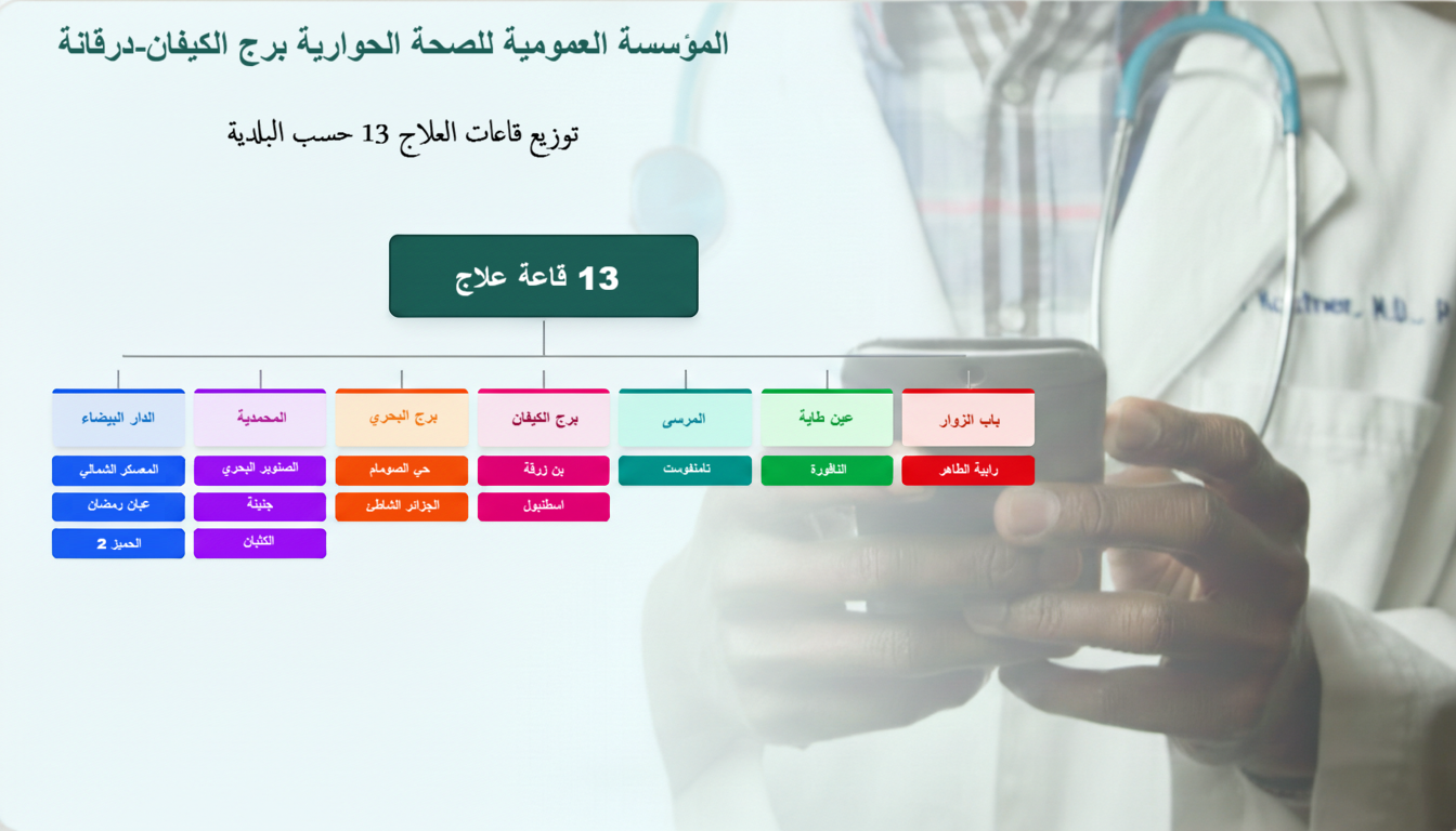 المؤسسة العمومية للصحة الجوارية برج الكيفان تغطي سبع بلديات وهي : عين طاية , المرسى , برج البحري , برج الكيفان , الدار البيضاء , باب الزوار و المحمدية